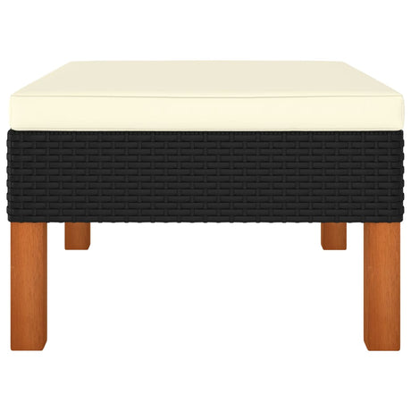 Footstool Poly Rattan and Solid Eucalyptus Wood
