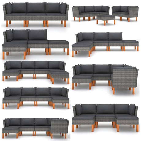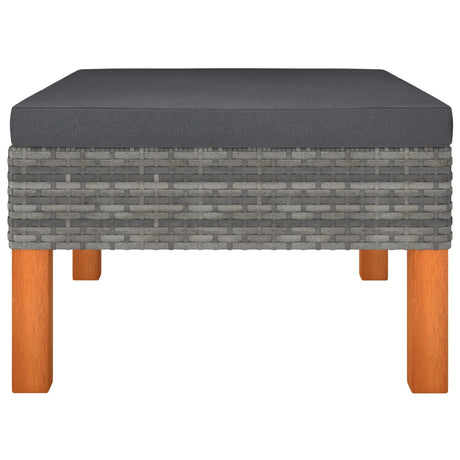 Footstool Poly Rattan and Solid Eucalyptus Wood