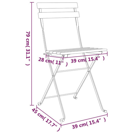Folding Bistro Chairs 2 pcs Solid Wood Acacia and Steel