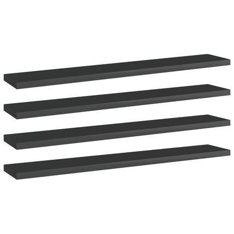 Bookshelf Boards 4 pcs High Gloss Black 80x10x1.5 cm Engineered Wood
