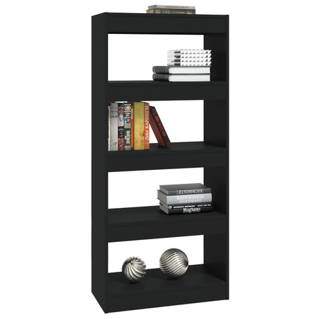 Book Cabinet/Room Divider Black 60x35x57 cm Solid Wood Pine
