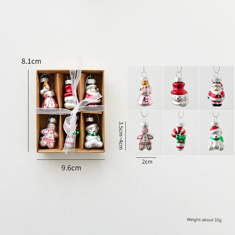 Style C Colorful Dainty Miniature Glass Christmas Ornament Set - 6pc Micro Holiday Characters