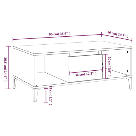 Coffee Table White 90x50x36.5 cm Engineered Wood