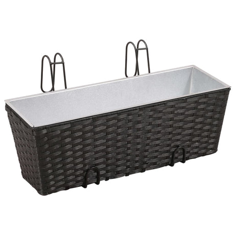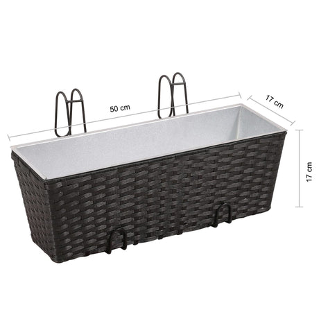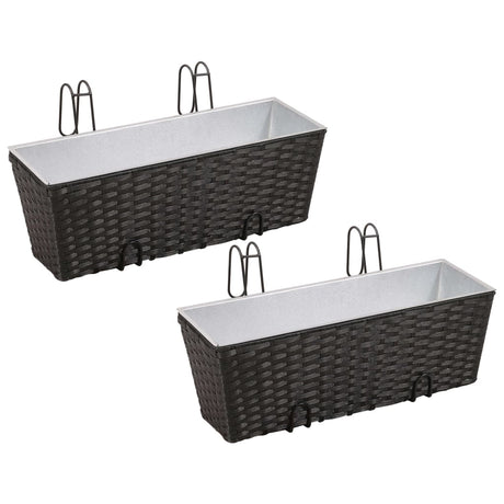 Balcony Trapezoid Rattan Planter 2 pcs Black