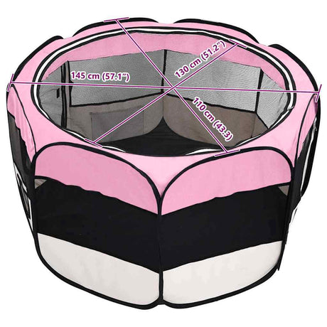 Foldable Dog Playpen with Carrying Bag Pink 145x145x61 cm
