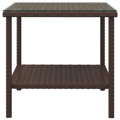 Side Table Brown 45x45x45 cm Poly Rattan and Tempered Glass