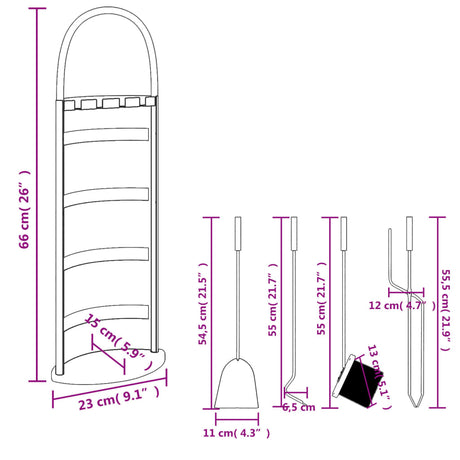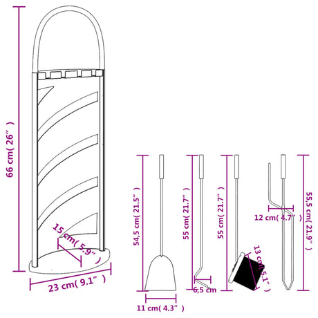 5 Piece Fireplace Tool Set 23x15x66 cm Steel