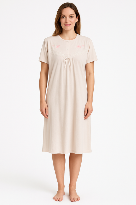 Womens Ladies Cotton Blend Nightie Night Gown Pajamas Pyjamas Sleepwear PJ - Pink - 14