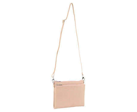 Pierre Cardin Ladies Cross Body Bag Leather Clutch Shoulder Sling Womens - Blush