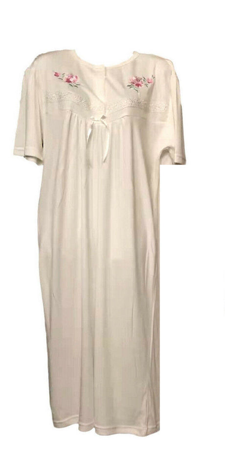 Womens Ladies Cotton Blend Nightie Night Gown Pajamas Pyjamas Sleepwear PJ - White - 14