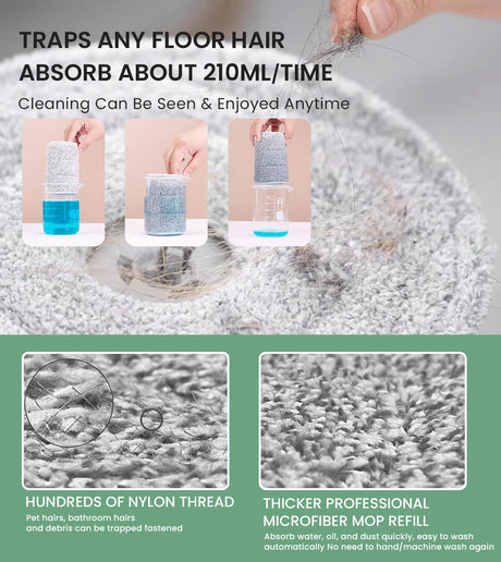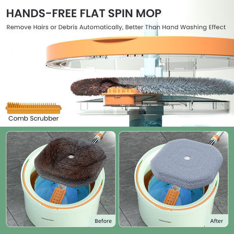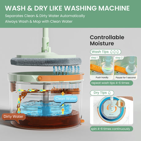 Premium Microfiber Round Mop Bucket Set w/ Clean & Dirty Water Separation 360 Degree - Light Green