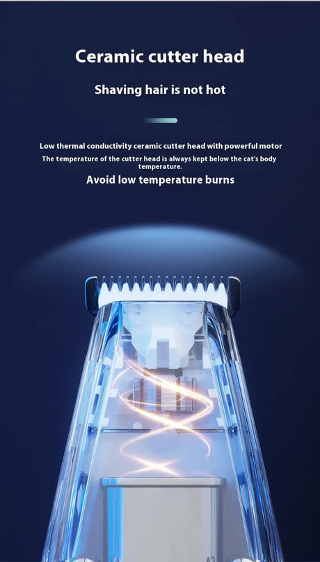 Blue Rechargeable Pet Grooming Clipper with Built-in Vacuum - Low Noise Hair Trimmer for Dogs & Cats