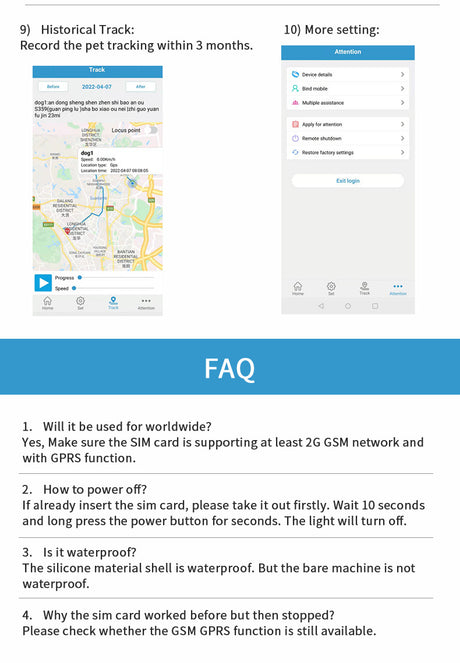 Blue Real-Time Pet GPS Tracker Locator - Magnetic Charging, Multi-Mode Positioning for Dogs & Cats