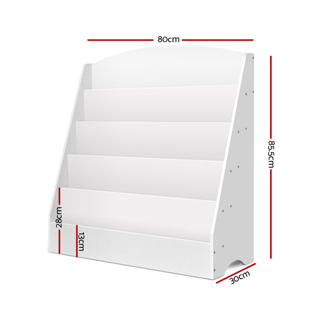 Keezi 5 Tiers Kids Bookshelf Magazine Shelf Organiser Bookcase Display Rack White