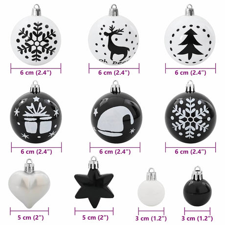 Christmas Bauble Set 40 pcs Black and White Plastic