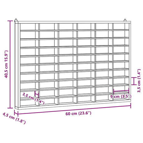 Wooden Collector's Display Case with 60 Compartments 60x4.5x40.5cm