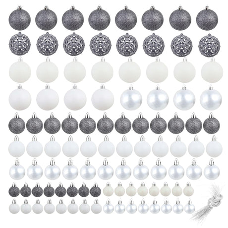 100 Piece Christmas Ball Set 3/4/6 cm White/Grey
