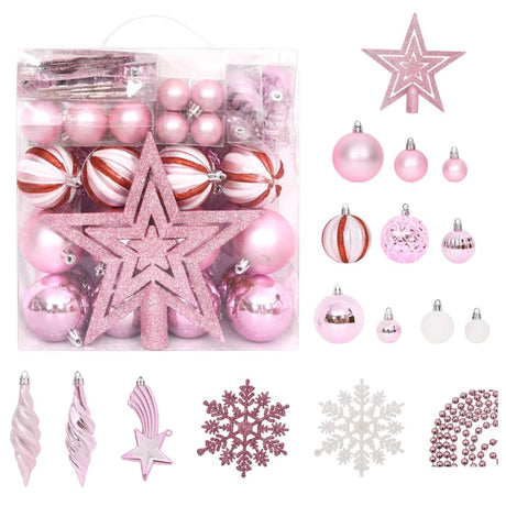 65 Piece Christmas Bauble Set Pink/Red/White