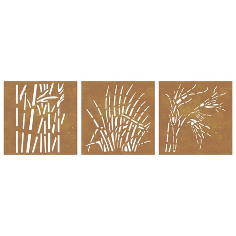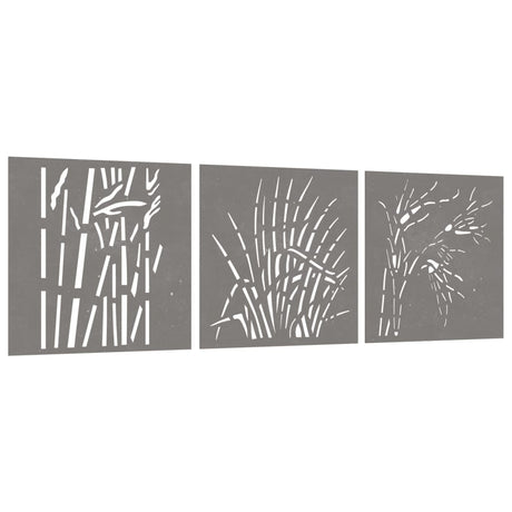 Garden Wall Decorations 3 pcs 55x55 cm Corten Steel Grass Design