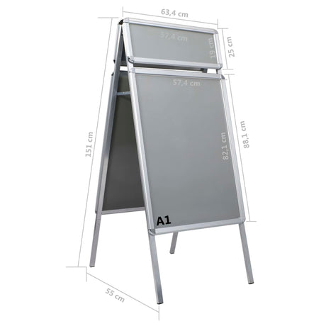 A3 Pedestal Poster Stand Silver Aluminium Alloy