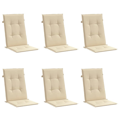 Garden Highback Chair Cushions 6 pcs Cream 120x50x3 cm Fabric