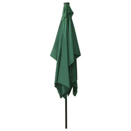 Garden Parasol with LEDs and Steel Pole Green 2x3 m