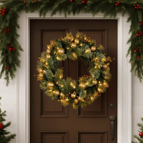 Christabelle 76cm Split Christmas Wreath with LED Lights for Double Front Doors Decoration