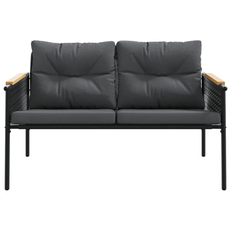Garden Bench with Cushions 116 cm Black Steel