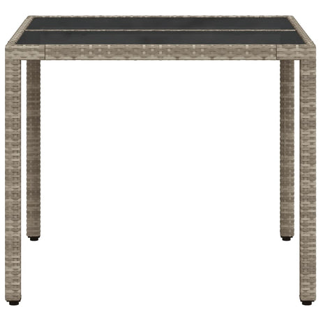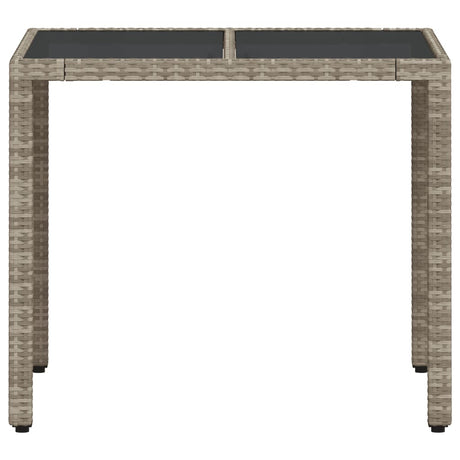 Garden Table with Glass Top Light Grey 90x90x75 cm Poly Rattan