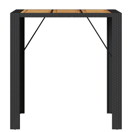 Garden Bar Table with Acacia Wood Top Black 105x80x110 cm Poly Rattan