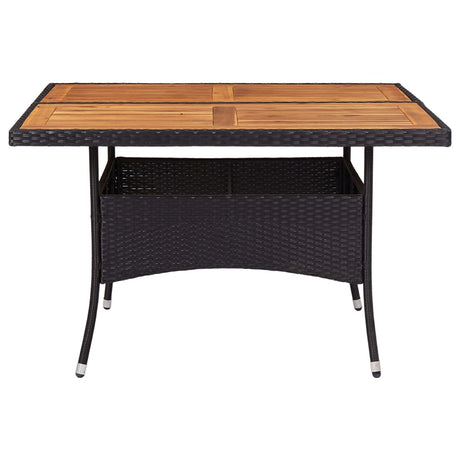 Outdoor Dining Table Black Poly Rattan and Solid Acacia Wood