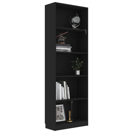5-Tier Book Cabinet Black 60x24x175 cm Engineered Wood