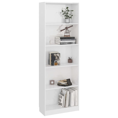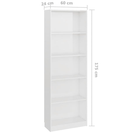 5-Tier Book Cabinet High Gloss White 60x24x175 cm Engineered Wood
