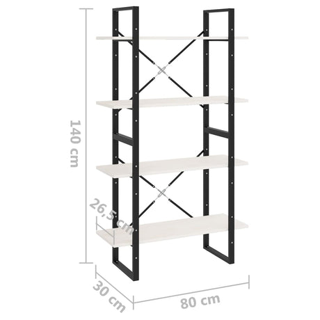 4-Tier Book Cabinet White 80x30x140 cm Solid Pine Wood