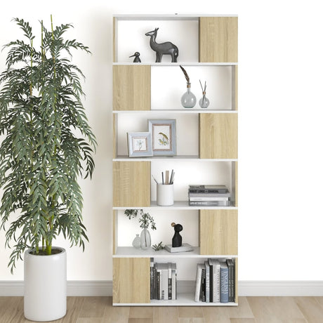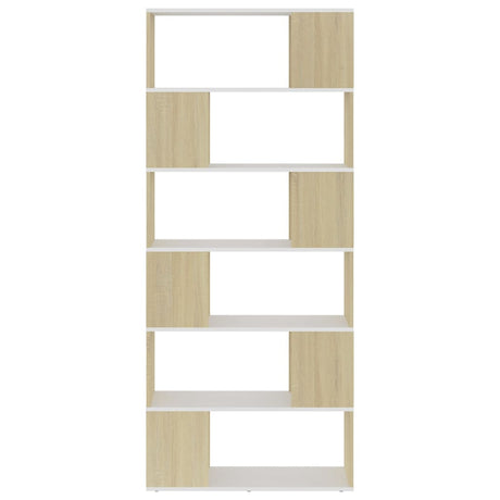 Book Cabinet Room Divider White and Sonoma Oak 80x24x186 cm Engineered Wood