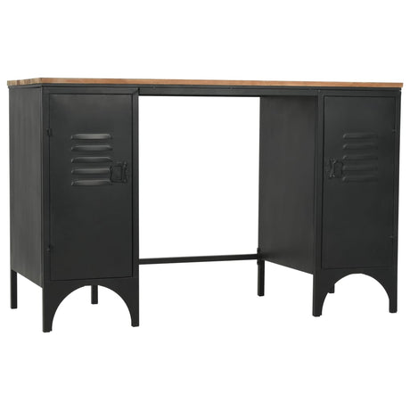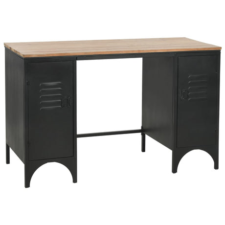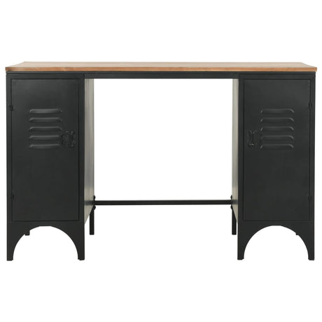Double Pedestal Desk Solid Firwood and Steel 120x50x76 cm