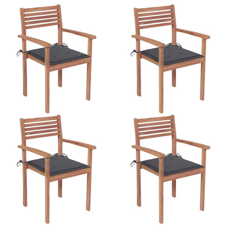Garden Chairs 4 pcs with Anthracite Cushions Solid Teak Wood