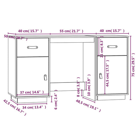 Desk with Cabinets 135x50x75 cm Solid Wood Pine
