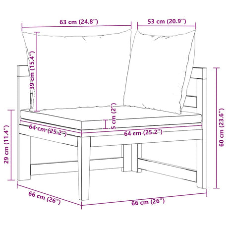 Sectional Middle Sofa with Dark Grey Cushions Solid Acacia Wood