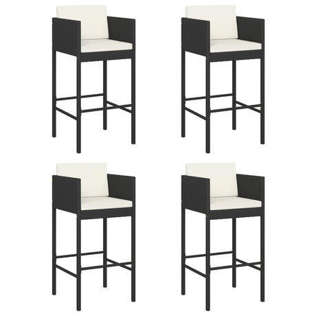 Bar Stools 4 pcs with Cushions Black Poly Rattan