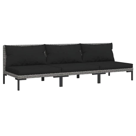 Garden Sofas 3pcs with Cushions Half Round Poly Rattan