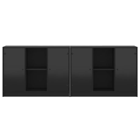 Bookcase with Doors Black 204x37x75 cm Engineered Wood