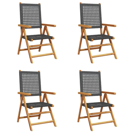Folding Garden Chairs 4 pcs Black Poly Rattan and Solid Wood