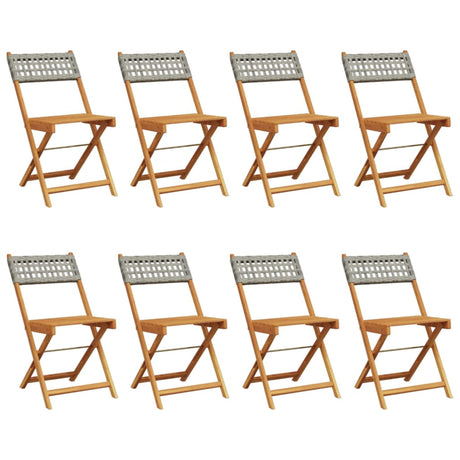 Folding Garden Chairs 8 pcs Grey Poly Rattan and Solid Wood