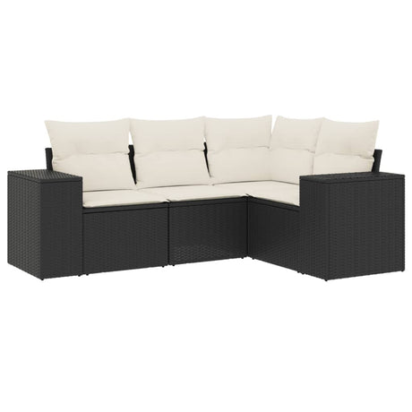 4 Piece Garden Sofa Set with Cushions Black Poly Rattan