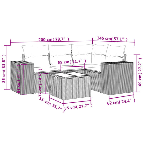 5 Piece Garden Sofa Set with Cushions Grey Poly Rattan
