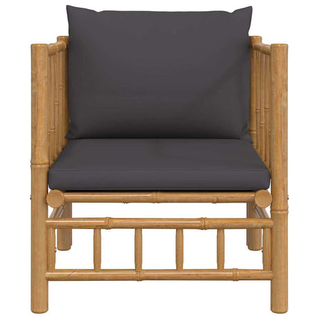 2 Piece Garden Lounge Set with Dark Grey Cushions Bamboo