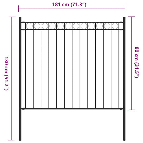 Garden Fence Steel 1.81x0.8 m Black