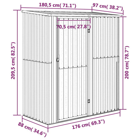 Garden Shed Green 180.5x97x209.5 cm Galvanised Steel