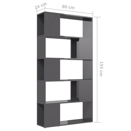 Book Cabinet Room Divider High Gloss Grey 80x24x155 cm Engineered Wood